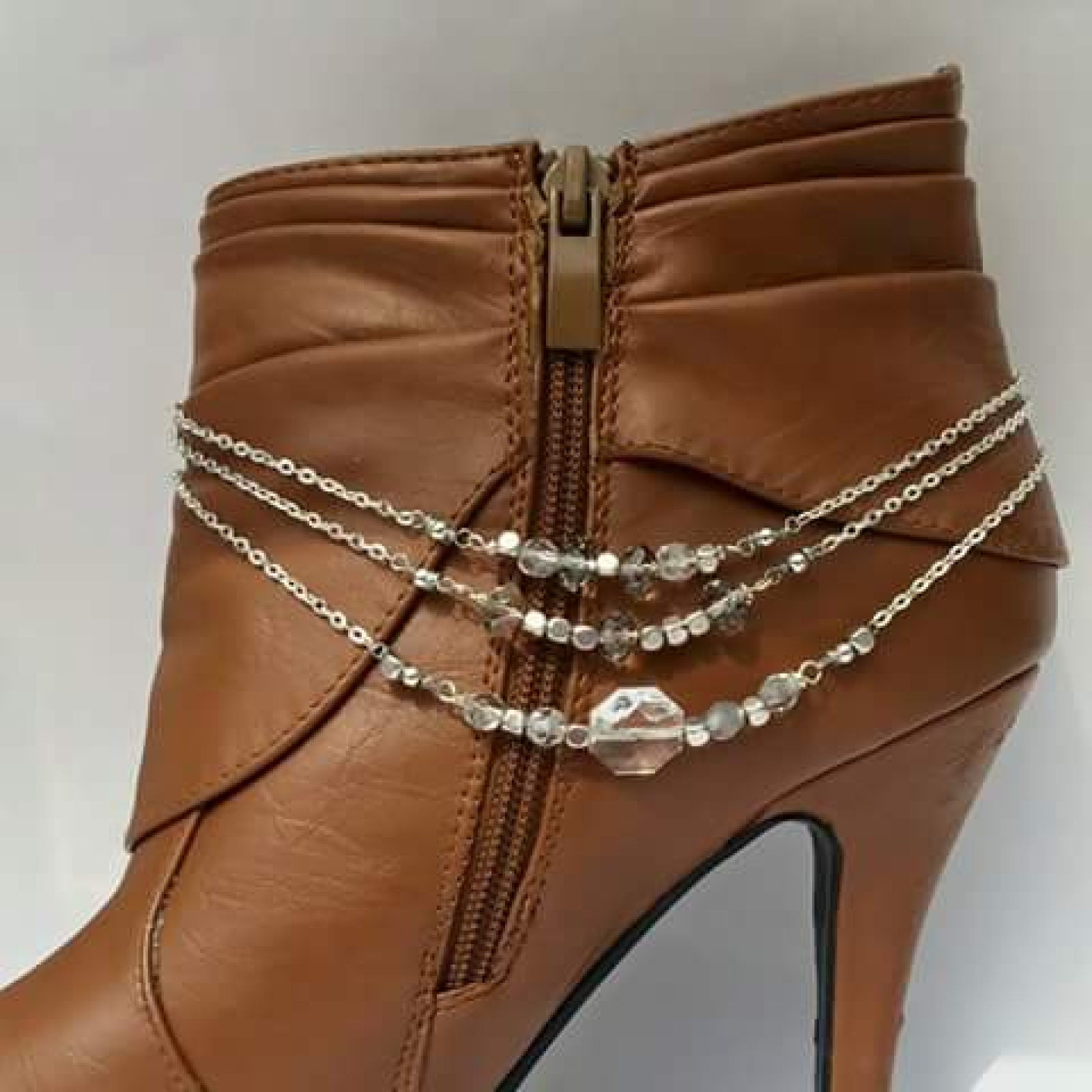 This chain is 14.5 to 16 inches and is accented with a beaded dangle at the end of the extension chain. It's best suitable for booties but All Over You Designs will adjust the size down if requested at no charge. Please request this with how long the chain needs to be using the order comment window during checkout.