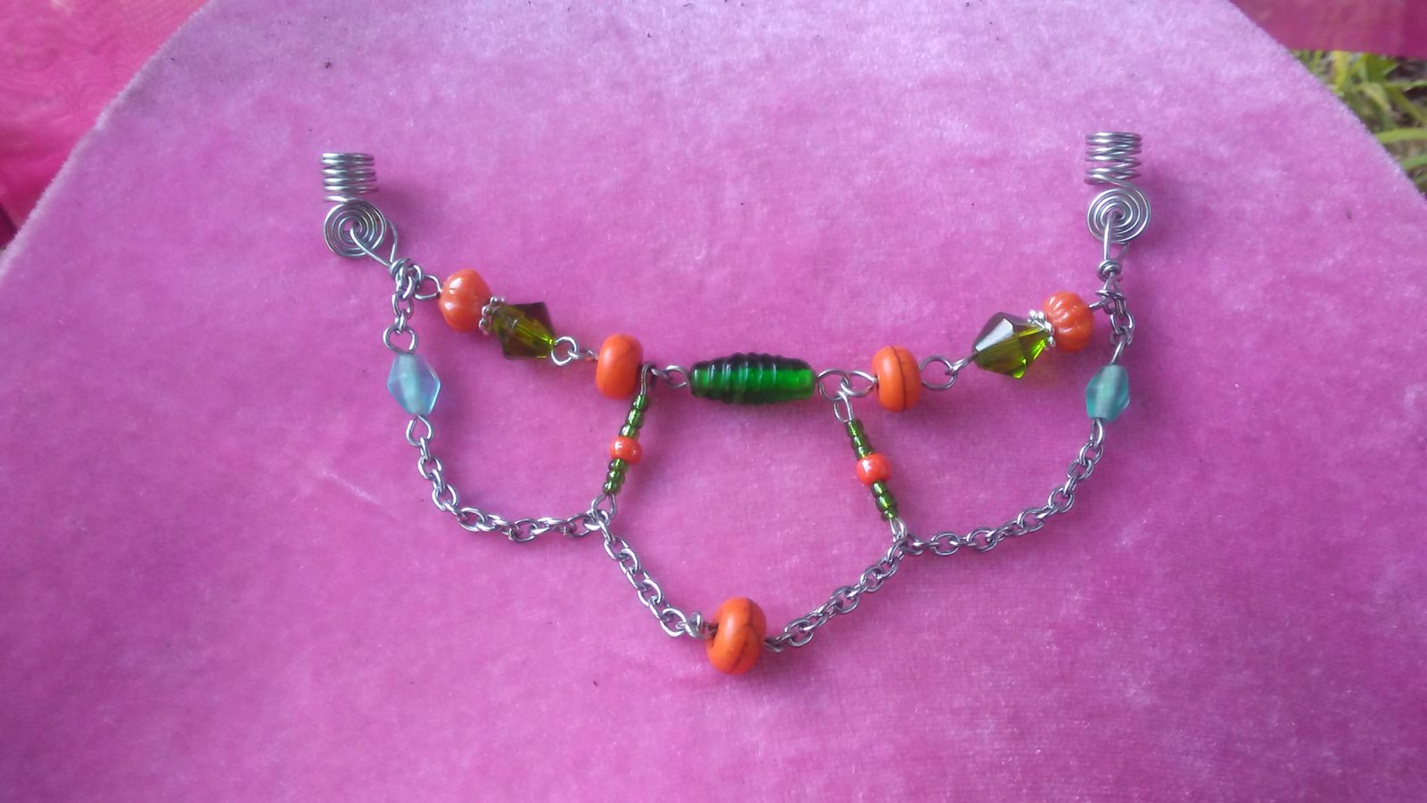This is made to fit onto 2 Locs or braids and the jeweled chain drapes between the two ends.