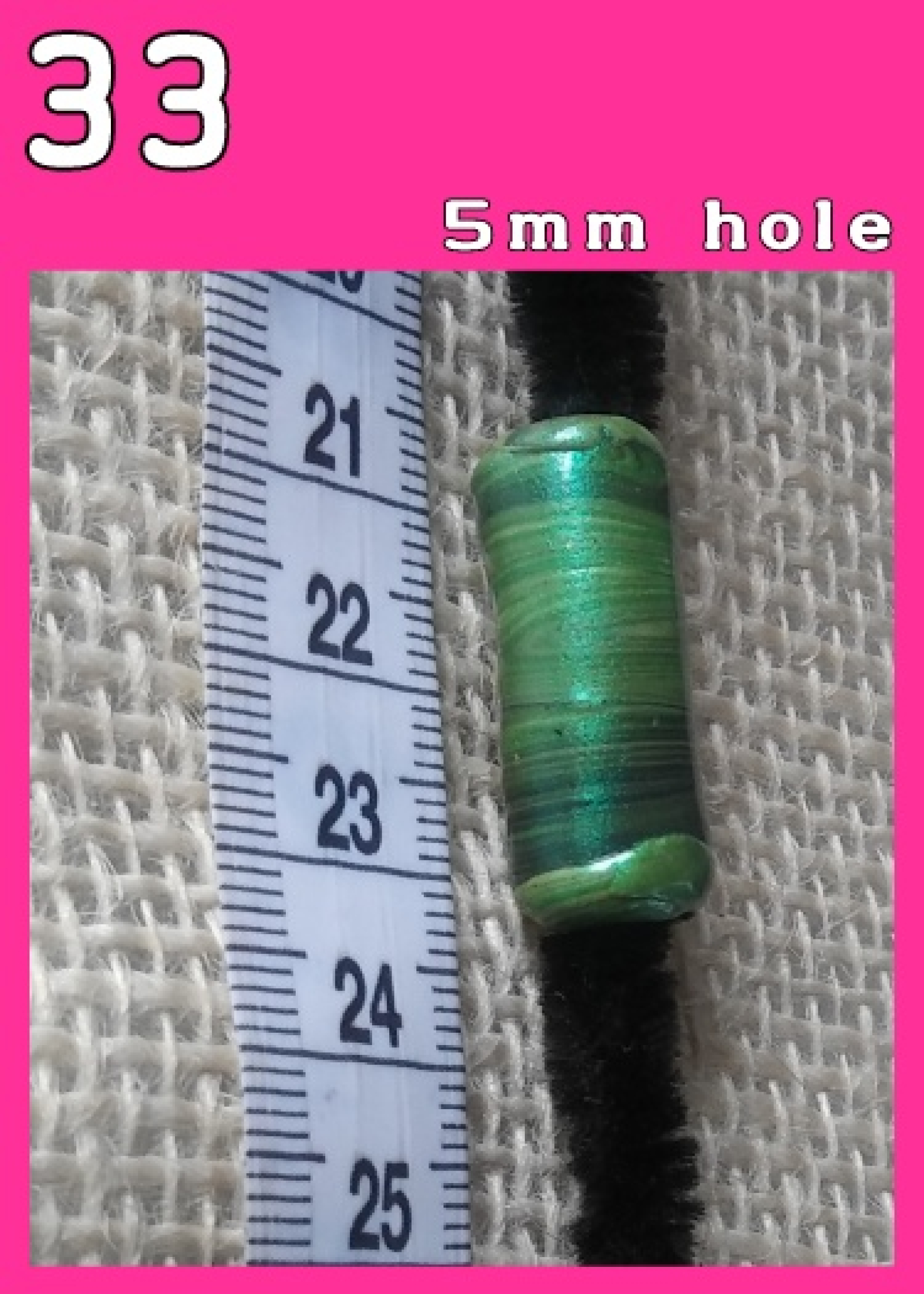 Individual Loc Jewel made as a solid tube with horizontal green and black color mix. Approximately 1 inch in length.