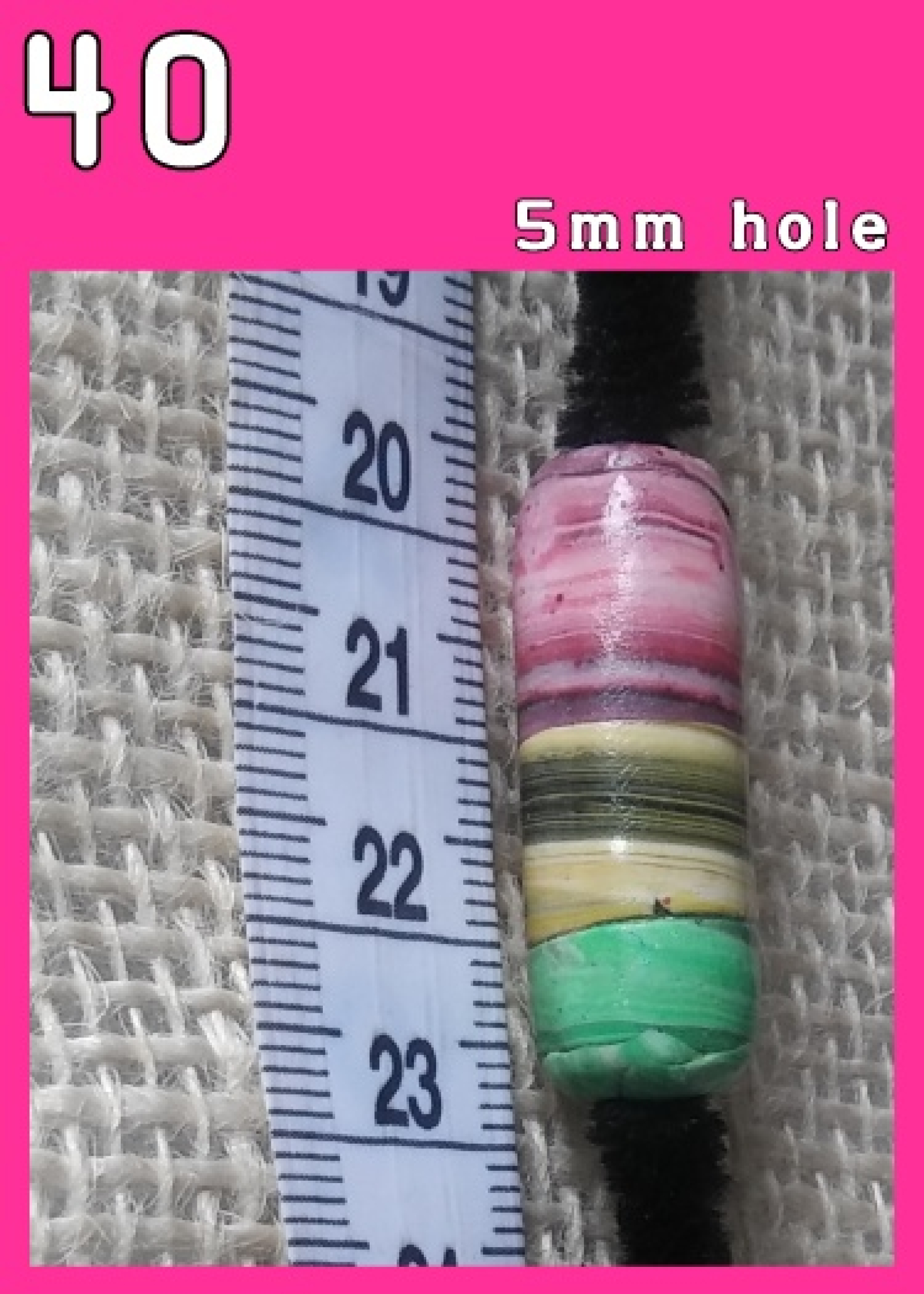 Individual Loc Jewel made as a solid tube with horizontal red, green and yellow with a black color mix. Approximately 1 inch in length.