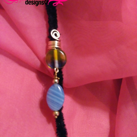 Individual Loc Jewel made with silvery wire coils, a skyblue bead dangling from a yellow to blue gradient focal bead.